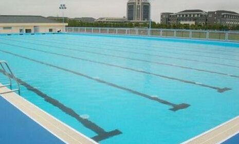 一、標(biāo)準(zhǔn)游泳池尺寸 標(biāo)準(zhǔn)游泳池長(zhǎng)50米(+0.03米),寬21米,奧運(yùn)會(huì)世界錦標(biāo)賽要求寬25米,另外還有長(zhǎng)度只有一半即25米(十0.02米)的游泳池稱(chēng)為短池。水深大于1.8米。有8個(gè)泳道,每道寬2.5米,邊道另加0.5米,兩泳道間有分道線(xiàn),分道線(xiàn)用浮標(biāo)線(xiàn)分掛在池壁兩端,池壁內(nèi)設(shè)掛線(xiàn)勾,池底和池端壁應(yīng)設(shè)泳道中心線(xiàn),為深色標(biāo)志線(xiàn)。出發(fā)臺(tái)應(yīng)居中設(shè)在每泳道中心線(xiàn)上,臺(tái)面50厘米×50厘米。臺(tái)面臨水面前緣應(yīng)高出水面50至70厘米,臺(tái)面傾向水面不應(yīng)超過(guò)10度。游泳池的池岸寬一般出發(fā)臺(tái)端不小于5米,其余池岸?